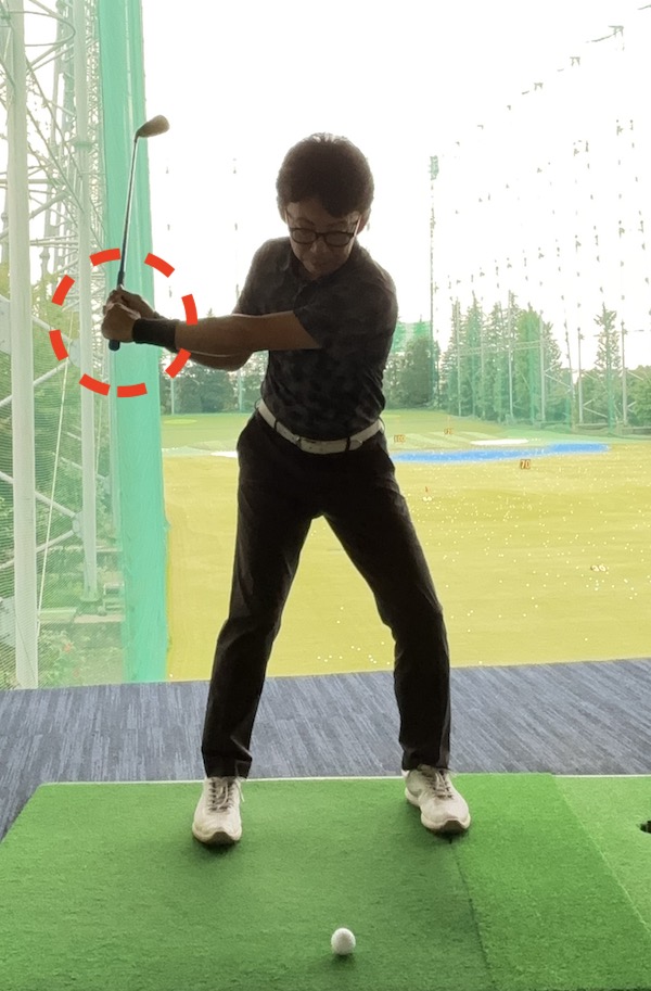 コックの動作でバックスイングを開始して、コック完了後カラダや肩を回転させる意識にするとコンパクトなトップを作りやすくなります。