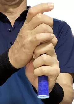 2.中指、薬指、小指を曲げて、グリップを軽く握ります。