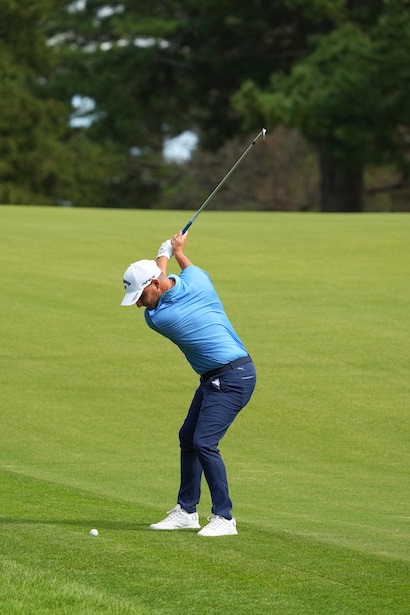 身長は175cm、飛ばす選手たちには50ヤードとか置いていかれる選手です。ですが、ショットの正確性を武器に2勝を挙げていて、とてもコンパクトなスイングをしています。アイアンではより小さく振って、ラインを出しています」