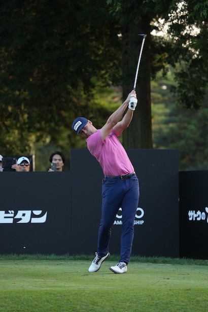 「ZOZOチャンピオンシップ2023では21位でしたね。この選手もエリック・コールやエミリアーノ・グリジョと同じく、フェースの開閉が少ないスイングをしています。まず、特徴的なのは、腰の高さまでフェースを開かないテークバック」