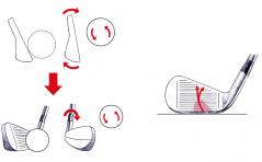 フェースターンを抑えるとトゥダウン現象も強まり、トゥ下打点になりがち。プッシュや巻き込むようなフックのミスが出やすくなる。