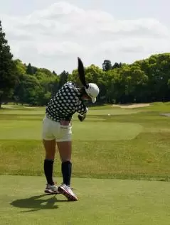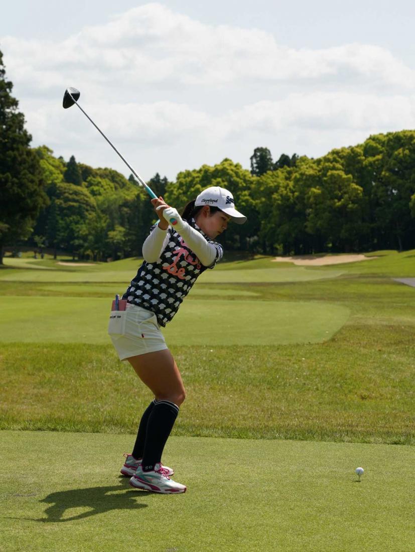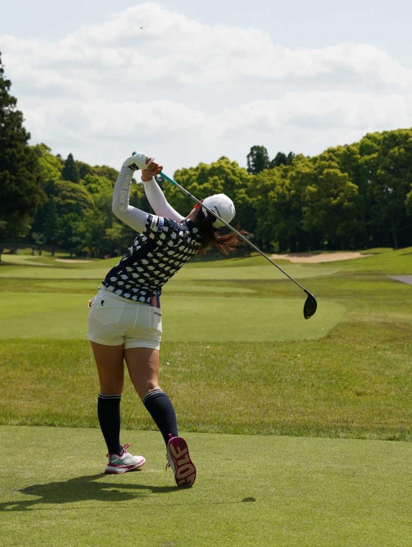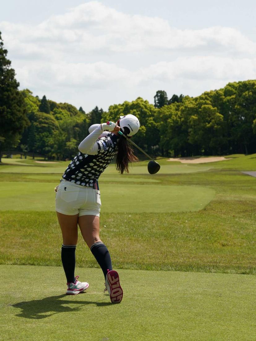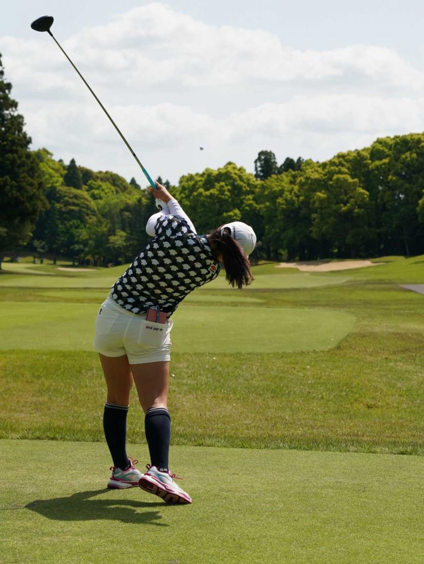 櫻井心那のドライバースイング(後方)|フォロー①