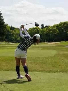 櫻井心那のドライバースイング(後方)|フィニッシュ