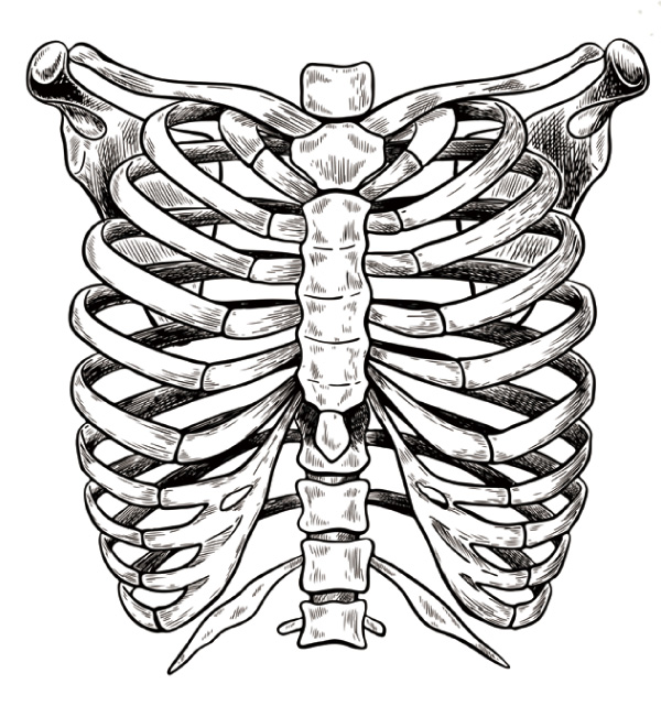 「胸郭」とは胸椎と胸骨と肋骨からなる上半身、胸の部分の総称のことで136個の関節で構成されている。