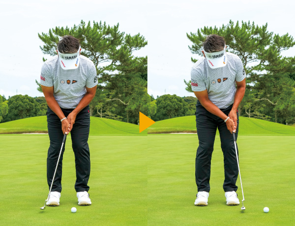 私のパターは一般的なクランクネックですが、調子が悪くなると、スクエアに当たる感覚がズレてミスパットを招く。その時はセンターシャフトやマレット型に替え、感覚やタイミングのズレを直します。パターの特性を理解することで、このような修正が素早くできます。