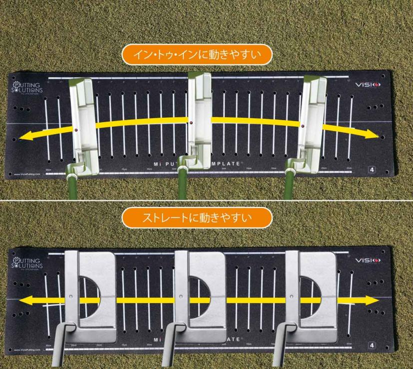 パターは、ヘッドがイン・トゥ・インに動きやすいタイプ(トゥヒールバランス)と、ストレートに動きやすいタイプ(フェースバランス)があります。