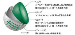 ※硬度分布を二段階に変化させたコアのことで、飛びとスピンの相反する性能を両立する。