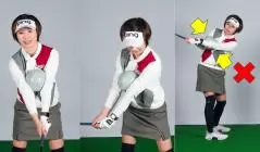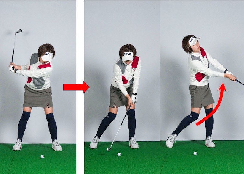 そのままだとダフることが予測できるので、ダウンスイングからインパクトでは体が起きてくる。切り返し以降は、マイナス要素を消そうとする動きが新たなマイナスを生むスイングになっていました。