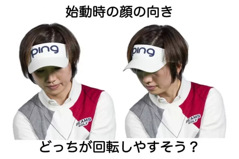 始動で「鼻を右ツマ先に向ける」と頭を残しすぎなくなる