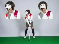 これで頭の残りすぎが緩和され、テークバックで少し体が動くようになりました。それでもまだ、クラブをインサイドに引く傾向は残っていました。原因は手でクラブを上げるからです。