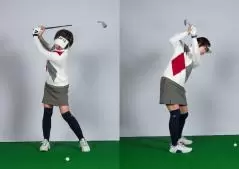 ヨコ振りするのと同じようにアドレス時の前傾をキープしたままスイング