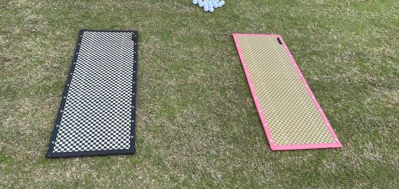 そして、一番目立って注目されていたのは畳! えっ、畳と思われる方もいるかもしれませんが畳です。日本のい草メーカー、大島屋さんの商品「300YARD-畳」。素足で乗ってスイングすることで足指、内転筋が鍛えられ、足裏から体重移動の感覚を得ることができて飛距離アップできるというアイテムなんだそうです。