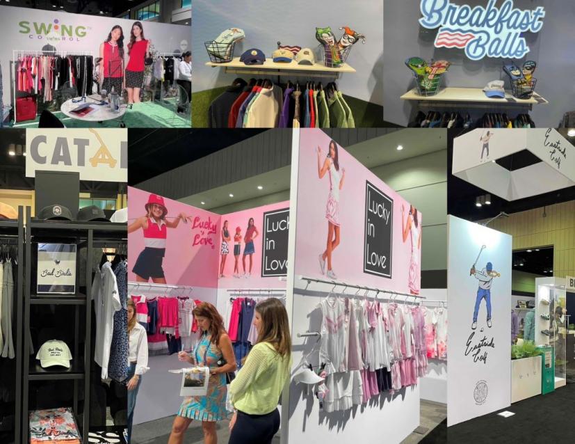 女性ウェアはすごく華やかでしたね! デザインも可愛い! 韓国のブランドも多かったです。勢いを感じましたね。男性ウェアは、すごく派手な物、シックな物、カジュアルな物といろいろあり、ゴルフウェアを選ぶとき、カジュアル派の私はついついそっちに吸い寄せられてしまいます。