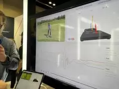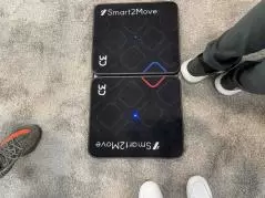 「Smart2Move」はバッテリーで充電式。足の圧力が手軽に測れます。屋外の練習場でレッスンしている私には夢の様な計測機械……見てると欲しくなってしまいますね。