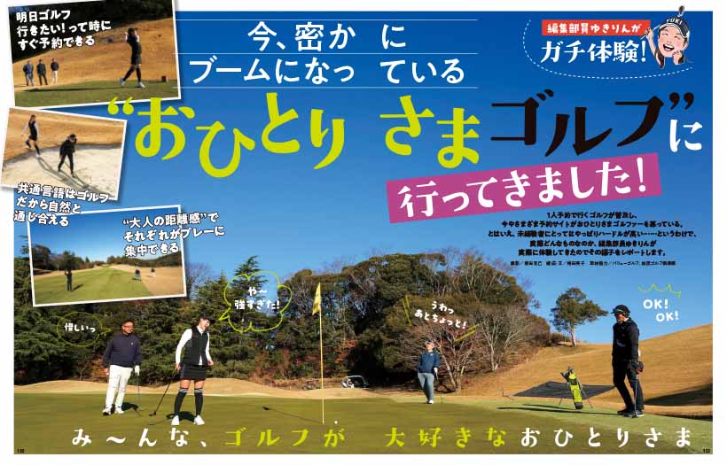 スペシャル企画としては、密かにブームになっている「おひとりさまゴルフ」編集部員のゆきりんがガチで体験してレポート。