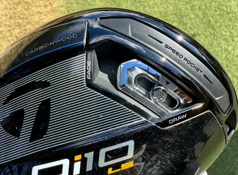 ヘッド形状はネック側のシェイプが効いた洋梨形状です。ただこれもトゥ側の逃げが前作よりも少なく感じて、個人的には構えやすくなりました。ヘッドの下部には、トゥ・ヒール方向に動かすことができるスライド式のウェイト(18グラム)が装着されています。そのウェイトが動く溝の部分はネック寄りの部分がカーボンで覆われており、スイング中の空力性能が落ちないように工夫されています。細かい部分まで考えられていますね~。