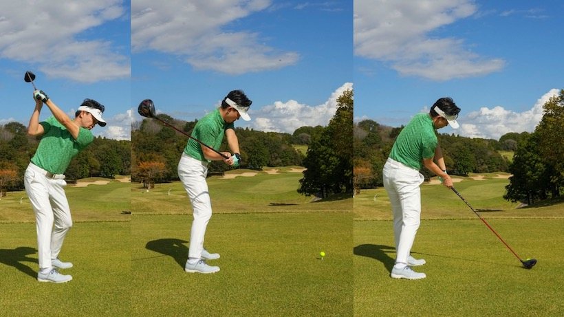 ダウンスイングでクラブを外から下ろし、インサイドに振り抜くことで起こるスライス。いわゆるアウトサイド・イン軌道によるスライスは、初中級者に顕著に見られる症状です。