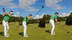 切り返しのタイミングで右ハンドルをきるとクラブがインから下りる