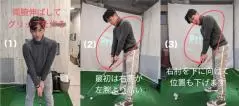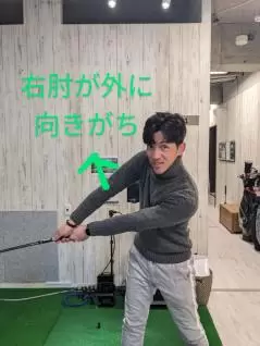 (1)右肘が外に向きがち⇒アウトサイドインを誘発&フェース左向いて最悪のチーピン