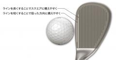 フェース下部に配した2本のショットアライメントラインにより、アドレス時にフェースをスクエアにキープしやすくなり、ショットの安定性を高める。