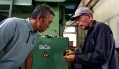 勝弘 あのプレス機は上からスクリューで捻るようにプレスすることで金型の中に鉄を閉じ込めることができます。私は90年代から鍛造アイアンをやるようになって、絶対にこのプレス機じゃないとダメだと思っています。