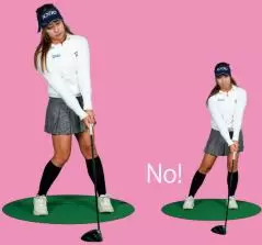 左足を踏み込むと、自然と左足体重になってしまう。右サイドでクラブをさばく(返す)感覚で打つと軸がセンターになる。