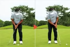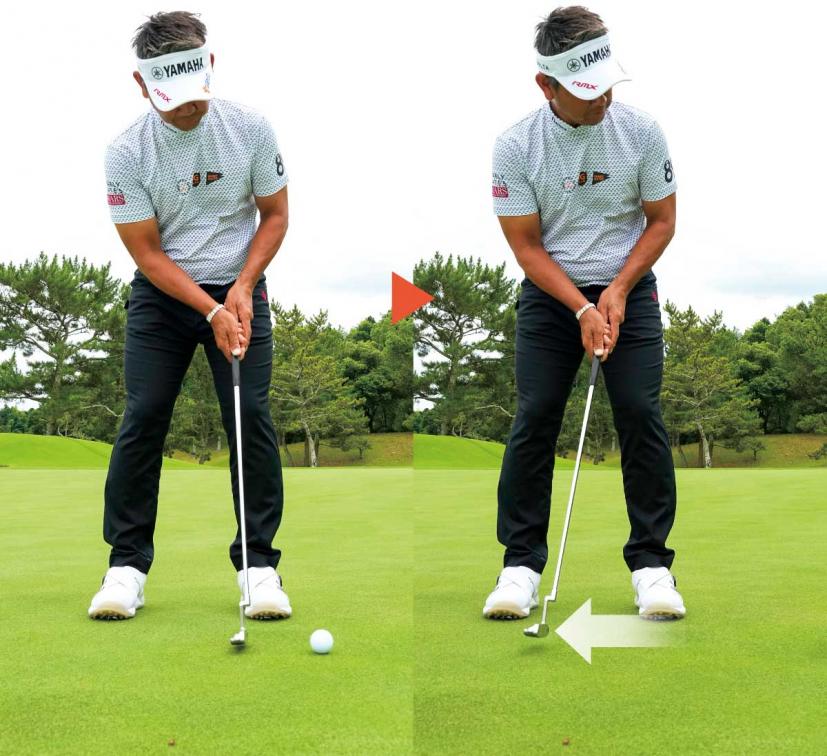 そこで、インパクトでボールをコツンと打ったらヘッドを止める、あるいは、ボールを打った直後にヘッドを後ろ(飛球線後方)に引いてみてください。こうしてフォロースルーよりインパクトを重視したほうが、緩むことなくボールを強くヒットできます。