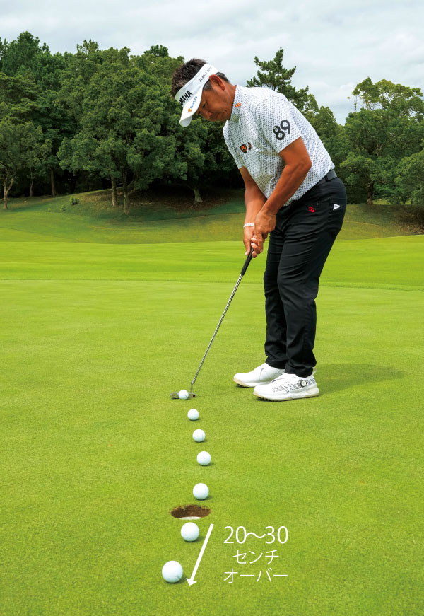 Never up、never in(カップに届かなければ入らない)という名言があるように、パッティングではショートのミスは厳禁。20~30センチオーバーのライン取りなら、たとえ入らなくても3パットのリスクを回避できる。