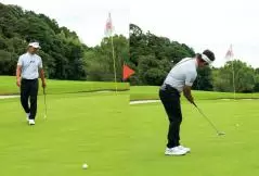 一つは、フォロースルーでパターのヘッドを無理に前に出すことをやめましょう。左右対称に振る、ヘッドを低く長く出すといったセオリーがありますが、それを守ってヘッドを無理に出すと、インパクトが弱くなったりフェースが開いたりするからです。