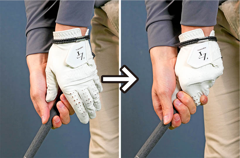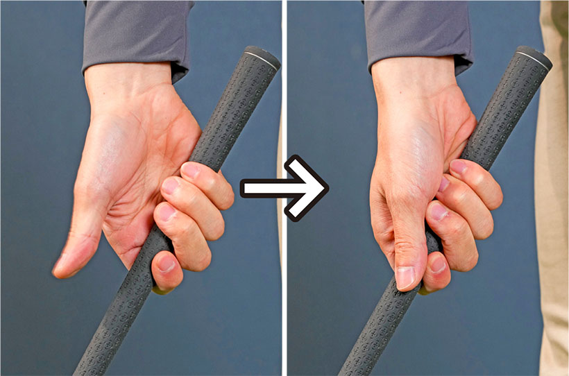 ただし、右手は指で握り、左手は小指球で押さえる感覚を大事にしてください。