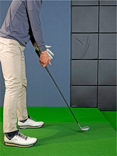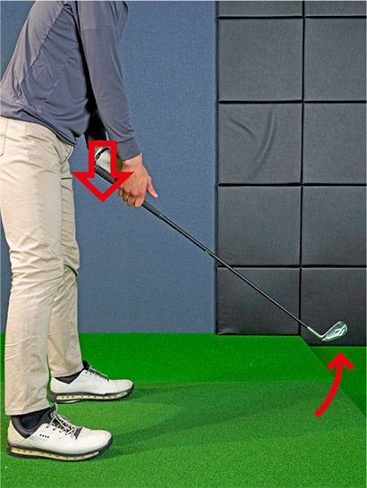 試しに右手は親指を除く4本で握り、左手は小指球の部分をグリップの真上に乗せた状態でクラブを持ってください。そして左手のヒラを少し真下に押し下げれば、クラブヘッドがすっと浮いてくることが分かります。