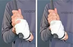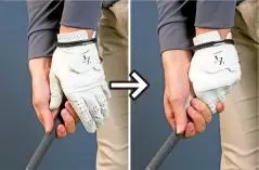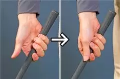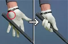 左手の小指側の3本でしっかり握れといいますが、この3本にとくに力を入れなくても左手グリップが安定しやすくなります。