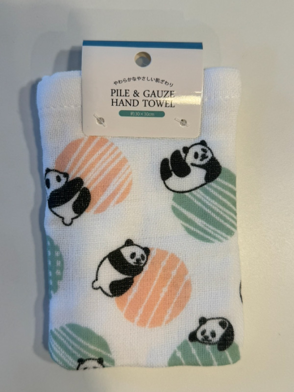 素材はパイルガーゼのもの。100均はハンドタオルの種類が豊富でどれでも良いけどこれをチョイス。理由は、見た目が可愛いから、それだけです…!