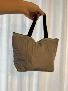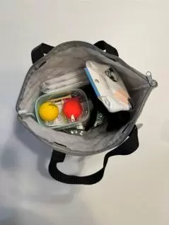 これはラウンドバッグにぴったり!本来はお弁当袋なのでしょうか。カートに置いておけるサイズでジップが付いているので、カートを離れているときもカラスに中身を持っていかれる心配もいらない!