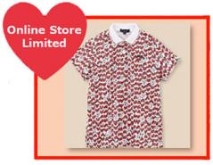 大きなカノコ目が特徴のポリエステル素材のシャツ。ハートを総柄でプリントし、リブ襟のハート刺繍とハート型の第一釦がアクセントに。袖口の配色ライン入りリブでスポーティーさをプラス。