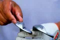 博士 「Hグラインド」は「ハーフムーンソール」で野村クンのいうようにフェースを開いて使いたい人向き。ダウンブローでボールをとらえることができて、テクニックを使ってよせたいゴルファーに向いているウェッジ