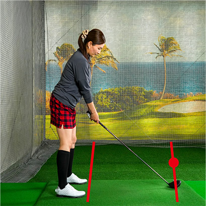 ボールの近くに仮の目標を設定し、飛球線に対して平行に立つのがスクエアなアドレスを作る基本です。