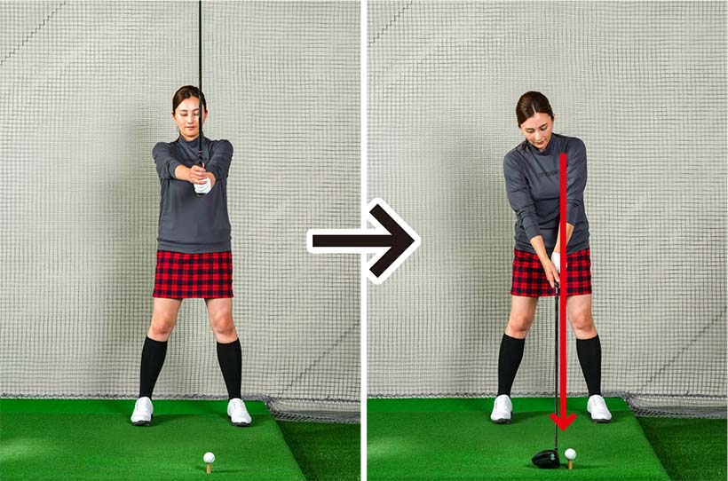 ドライバーはとくに両ヒジのラインにズレが生じやすいので、次のような手順でアドレスを作るのがいいでしょう。