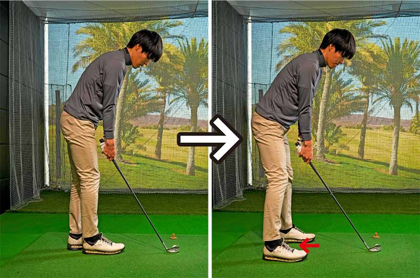 4.左足、右足の順でスタンスの位置を決めてアドレスを完成させる
