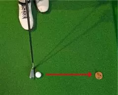 1.ボールの先にゴムティやコインなど仮の目標(スパット)となるものを置く