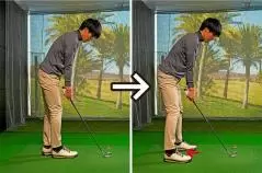 そうすれば両手をグリップした後、両足を広げるときに自分がボールを打ちやすいポジションまで両足を後ろに下げることができ、適切なスタンスの位置を決めやすくなります。