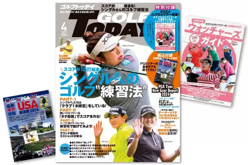 巻頭特集は「スコアが10打縮まる! シングルさんのゴルフ練習法」で、平均して70代でラウンドするシングル・ハンデの人たちは、長い時間をかけて、難しい練習をしているように思われるが、実は時短で、シンプル簡単な練習で上手さを持続しているのだ。パート1では通常キャデイバッグごと練習場に持って行って満遍なくクラブを打つことが多い一般アマチュアだが、実は1本のクラブだけ練習する方が効果的という内容、実際にウエッジのみ、7番アイアンのみでの練習を紹介。他にも曲げたくなければ練習場では曲げて打つ練習をすべき。実践ラウンドでのタテ距離の合わせ方、ラウンド直前のミス対策など。