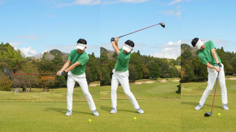 例えば、バックスイングで体重を右足に乗せようとすると、文字通り右に移動しながら体重を乗せる人が多い。まさに「体重移動」という言葉が招く誤解ですが、意図的に移動させると動きが直線的になります。この例で言えば、バックスイングで右腰が右にスライドする、いわゆるスエーになってしまうのです。