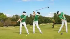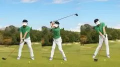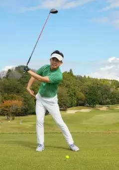 バックスイングで右にスエーすると体重は右足に乗るかもしれませんが、多くの場合、インパクトからフォローで右足体重のままになります。というのも、左に体重移動しながらインパクトに向かうと、かなり大きく動かなければなりません。そうなると当たらない気がして右足体重のままになるのです。また、バックスイングでスエーしているにも関わらず体重が左足に残り、反対にインパクトで右足体重になる“ギッタンバッコン”の人もいます。いずれにしてもすくい打つ格好になるのでトップやチョロが出やすくなるのです。
