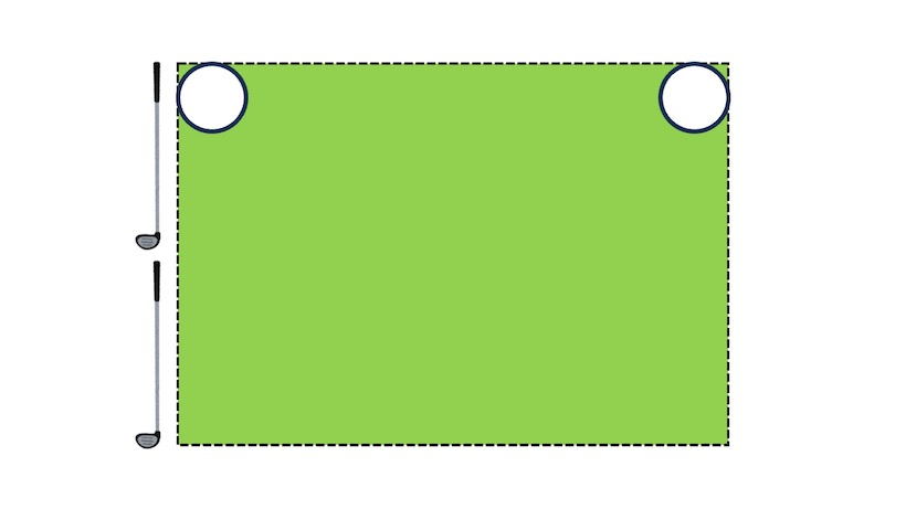 ティーショットを打つ場所には、2つのティーマーカーが置いてありますが、このティーマーカーの外側を結んだ線の内側で、奥行きはその線から2クラブレングス以内をティーイングエリアと呼びます。そして、ティーショットを打つときは、必ずこのエリア内から打たなければいけません。