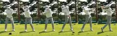 もちろん、トレーニングだけではなく、スイングにも多少のアレンジを加えている。アドレスでは重心位置を低めにして、スタンスを多少広めに。バックスイングでは右足股関節に上体をしっかり乗せ、ヘソの少し下にある丹田に力を入れてからダウンスイングを行うようにしている。ただ、ヘッドスピードを上げるには、フォロースルーが重要だ。クラブヘッドと一緒にグリップエンドまで目標方向に動いてしまうと、ヘッドスピードは上がらない。