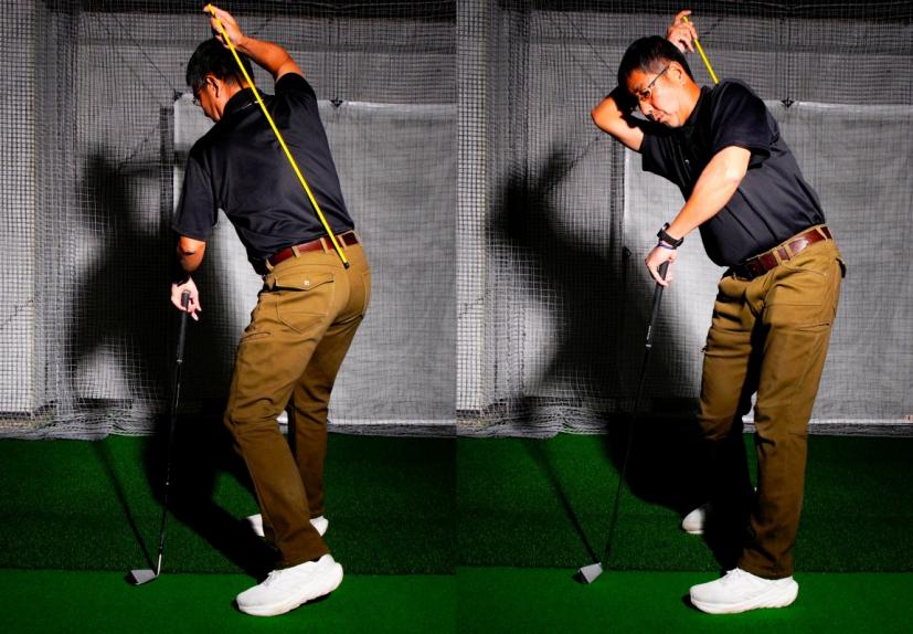 「みなさんは『スイング軸』と言われてどこをイメージするでしょうか? だいたい背骨をイメージするのではないでしょうか? そうですね、イメージは背骨でいいと思います」(合田)