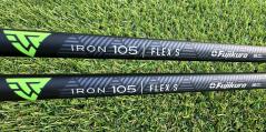 僕が打ったのは「TRAVIL IRON 105 S」。カタログ数値で108g、トルク2.2の中元調子です。まずワッグルをしてみると、けっこうズッシリと重さを感じます。しなりもあまり大きくなく、マットブラックの色も手伝ってか、かなりハードなシャフトに感じました。