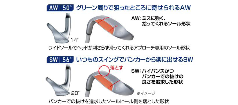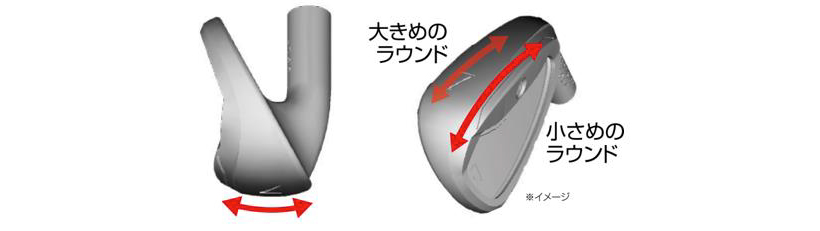 抜け、滑りの良さを重視する、2種類のラウンドで構成された抜けの良いソール形状により、ダフリに悩む女性ゴルファーでも安心して振り抜ける専用設計。