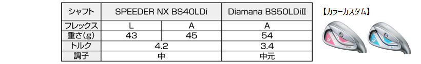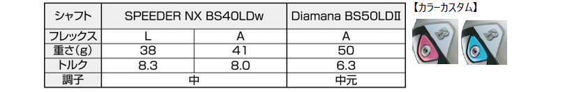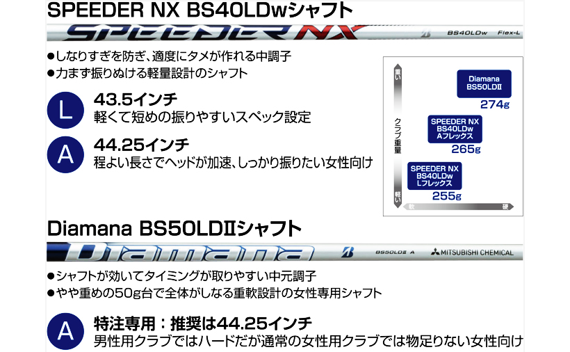 ※SPEEDER NX BS40LDw、Diamana BS50LDIIのスペックは、カット後の数値です。